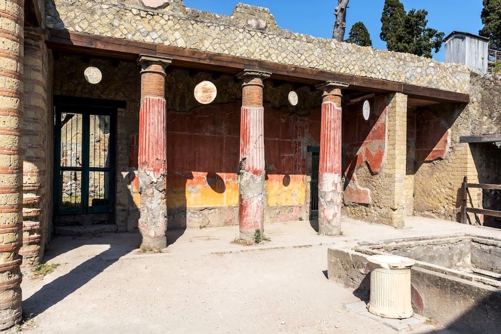 Come Pompei, Ercolano fu sepolta dall’eruzione del Vesuvio nel 79 dopo Cristo. L’intera città venne letteralmente sigillata sotto una coltre di 16 metri di materiali piroclastici e fango, ciò ha permesso di conservare in maniera quasi integra di domus a due piani, all’interno delle quali sono stati rinvenuti molti reperti, tra cui stoffe, vegetali, cibi e strutture in legno.
