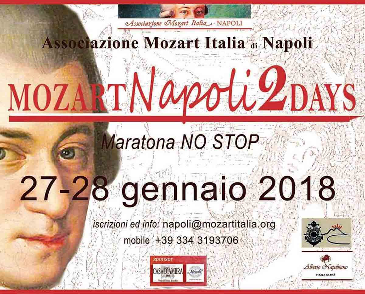 Per i 262 anni dalla nascita di Mozart, si terrà a Napoli il Mozart 2 Days a Napoli, 2 giorni di concerti a ingresso libero dedicati al grande compositore salisburghese. Il 27 gennaio 1756 fu infatti il giorno in cui nacque a Salisburgo uno dei più grandi geni della musica di ogni tempo.
